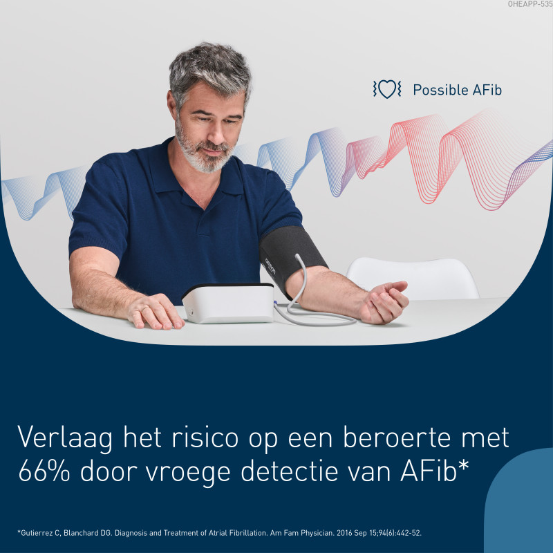 Voorzien van de nieuwste Intellisense AFib-technologie, die automatisch op AFib screent bij elke bloeddrukcontrole. En biedt indien gewenst de "TruRead Mode" voor 3 opeenvolgende metingen.