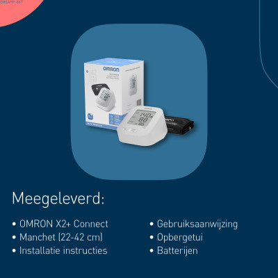 De OMRON X2+ Connect is ontwikkeld voor wie op zoek is naar een gebruiksvriendelijke, nauwkeurige en verbonden bovenarm bloeddrukmeter, ideaal voor dagelijks gebruik thuis.