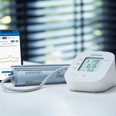 Met de X2 Smart van OMRON kun je je meetwaarden over langere tijd betrouwbaar volgen en je bloeddruk nog gemakkelijker nauwkeurig meten. Doe de manchet om, druk op 'Start' en je bloeddruk wordt gemeten en automatisch opgeslagen in de OMRON connect-app. Je kunt de meetwaarden direct met je arts delen.